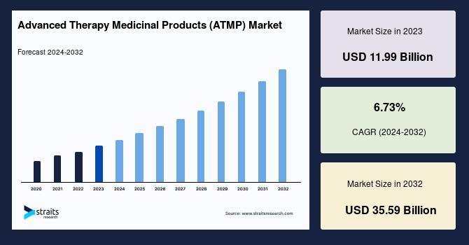 According to StraitsResearch, the global advanced therapy medicinal products (atmp) market size was estimated at USD 11.99 billion in 2023 and is anticipated to grow from USD 14.61 billion in 2024 till USD 35.59 billion in 2032, growing at a CAGR of 6.73% from 2024 to 2032.